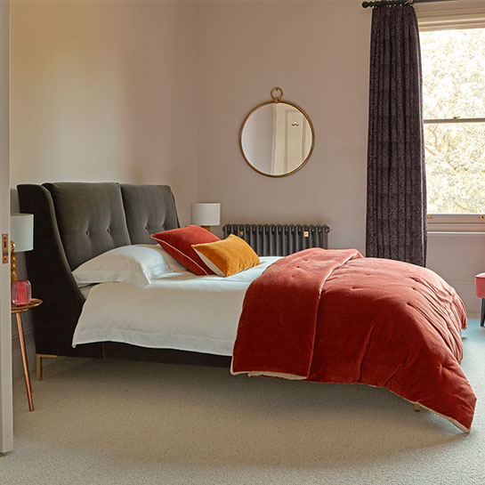 Whether used as the main colour scheme or as accents alongside bolder hues, earthy neutrals infuse your master bedroom with a sense of understated luxury. The sumptuous, chocolate-coloured velvet adorning the deep-buttoned headboard of our Marlborough Bed serves as the perfect statement piece, beautifully offsetting lighter neutral tones with its rich and luxurious texture.