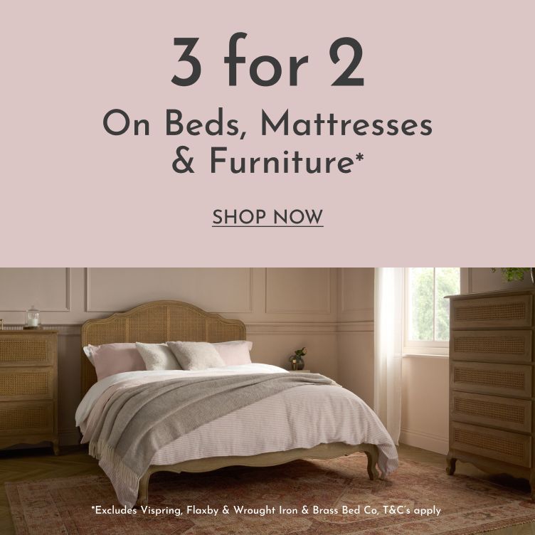 Find high-end beds, furniture and mattresses with 3 for 2 on everything. Our most popular beds, dressing tables, chest of drawers, mattresses and more on 3 for 2. A stylish and comfortable bedroom has never been easier to cultivate, as we bring traditional designs and modern flare into your home.