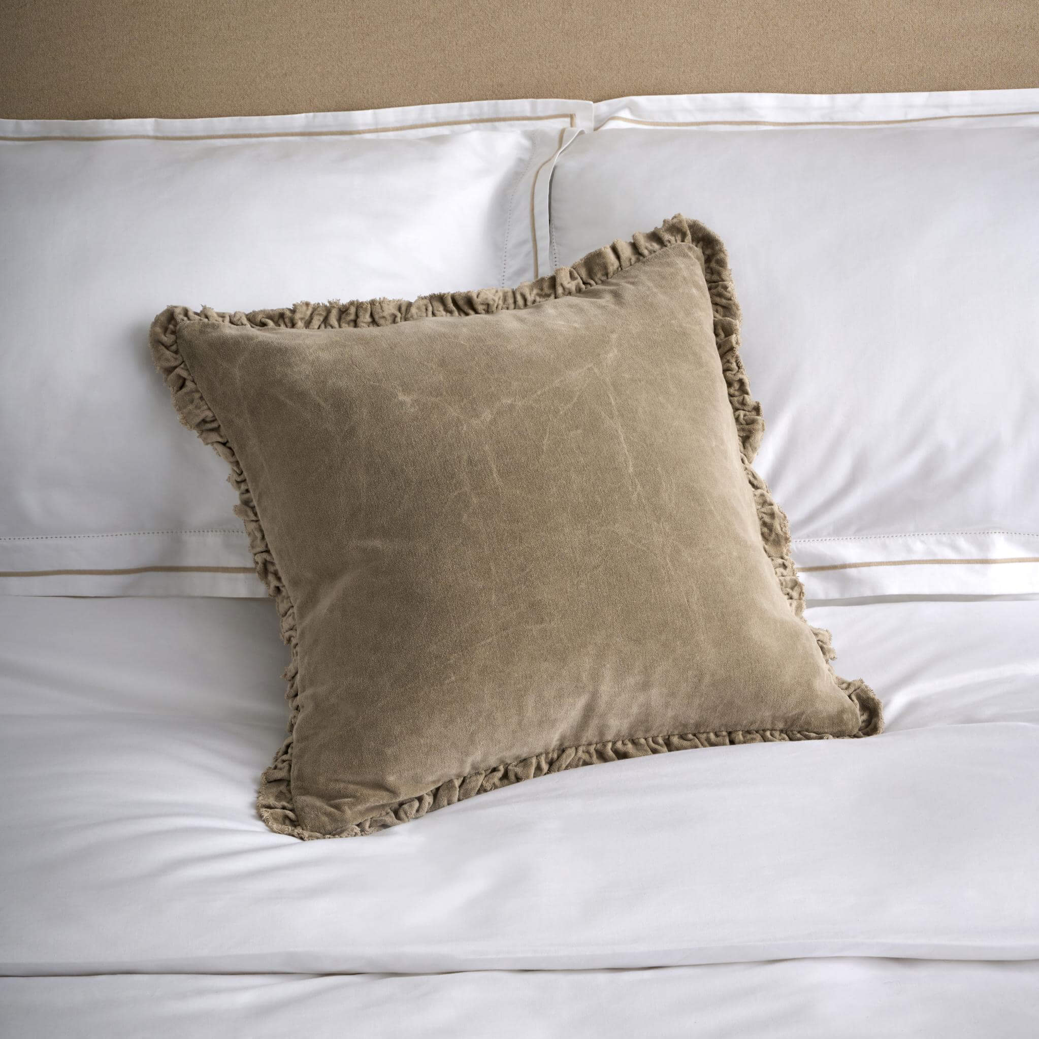 Stylish, soft and effortlessly inviting, the Catherine Cushion brings laidback elegance to your sleep or living space. Crafted from double-sided washed cotton velvet, it offers a sumptuously smooth feel enhanced by a relaxed frayed fringe trim, adding gentle texture and a touch of timeless charm. The plush duck feather filling ensures indulgent comfort.