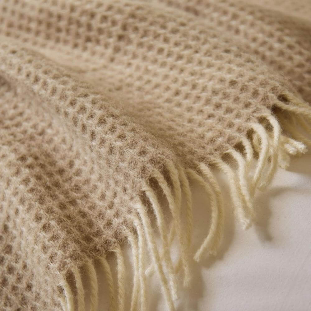 Embrace understated elegance with the Laura Waffle Throw, expertly crafted in the UK from 100% pure wool. The exquisitely soft finish is complemented by the gently textured weave and softly fringed edge, while its beautifully neutral oatmeal tone blends seamlessly into any interior – a timeless companion for serene spaces.