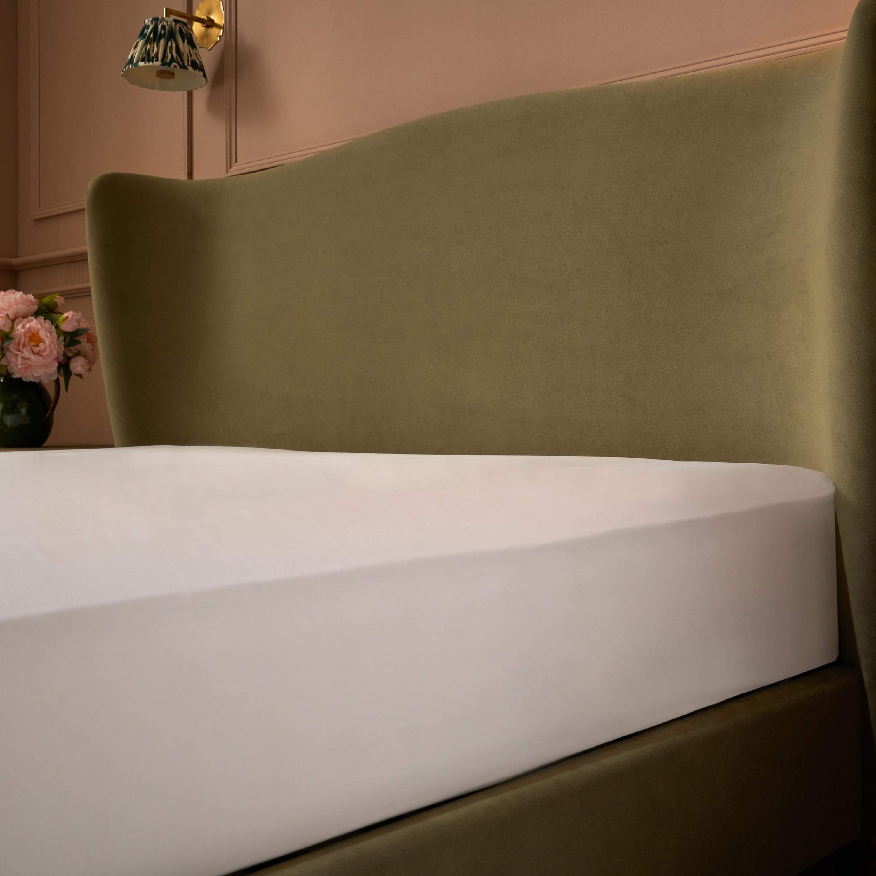 Tailored to perfection, the Kensington Fitted Sheet offers a smooth, seamless foundation for restful sleep. Expertly made in Portugal from 100% cotton sateen with an opulent 800 thread count, it offers a silky-soft feel and an elegant sheen. Elasticated corners provide a precise fit, while the naturally breathable weave keeps your bed comfortably cool.