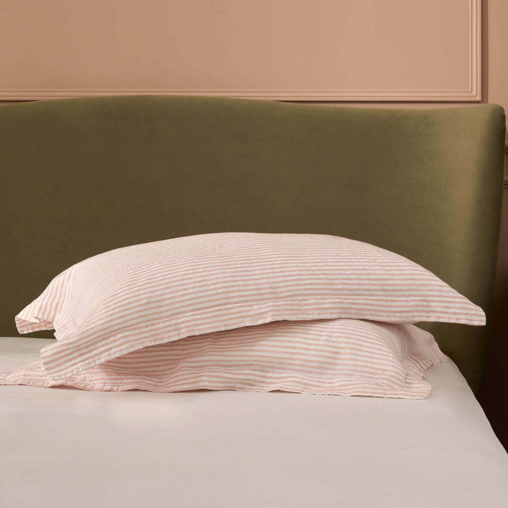 Introduce a touch of relaxed refinement to your bedding with the Amelie Oxford Edge Pillowcase Pair, woven in Portugal from a sumptuous cotton linen blend. With an 800-thread count, the fabric feels irresistibly soft, naturally breathable and rich with understated texture. Classic Oxford edges and a palette of gentle block colours or muted stripes lend graceful elegance to the lived-in look.