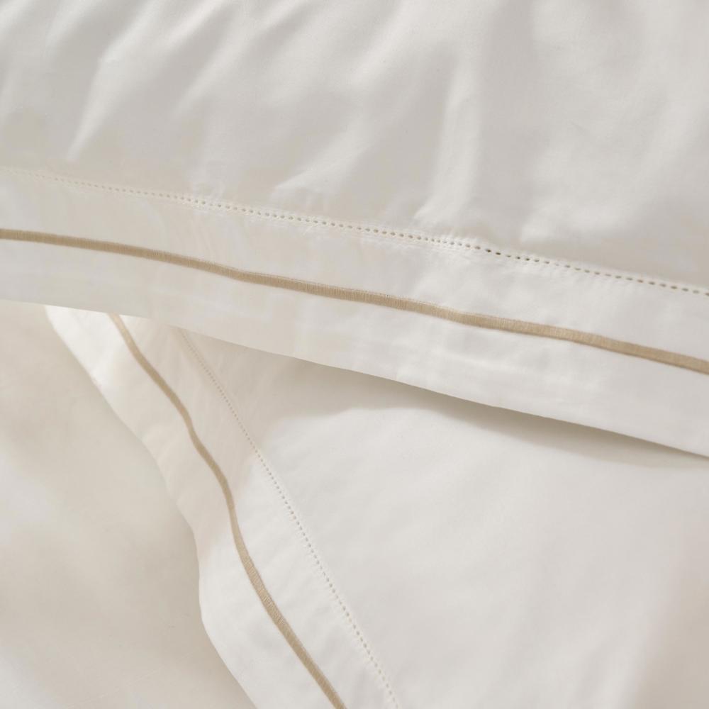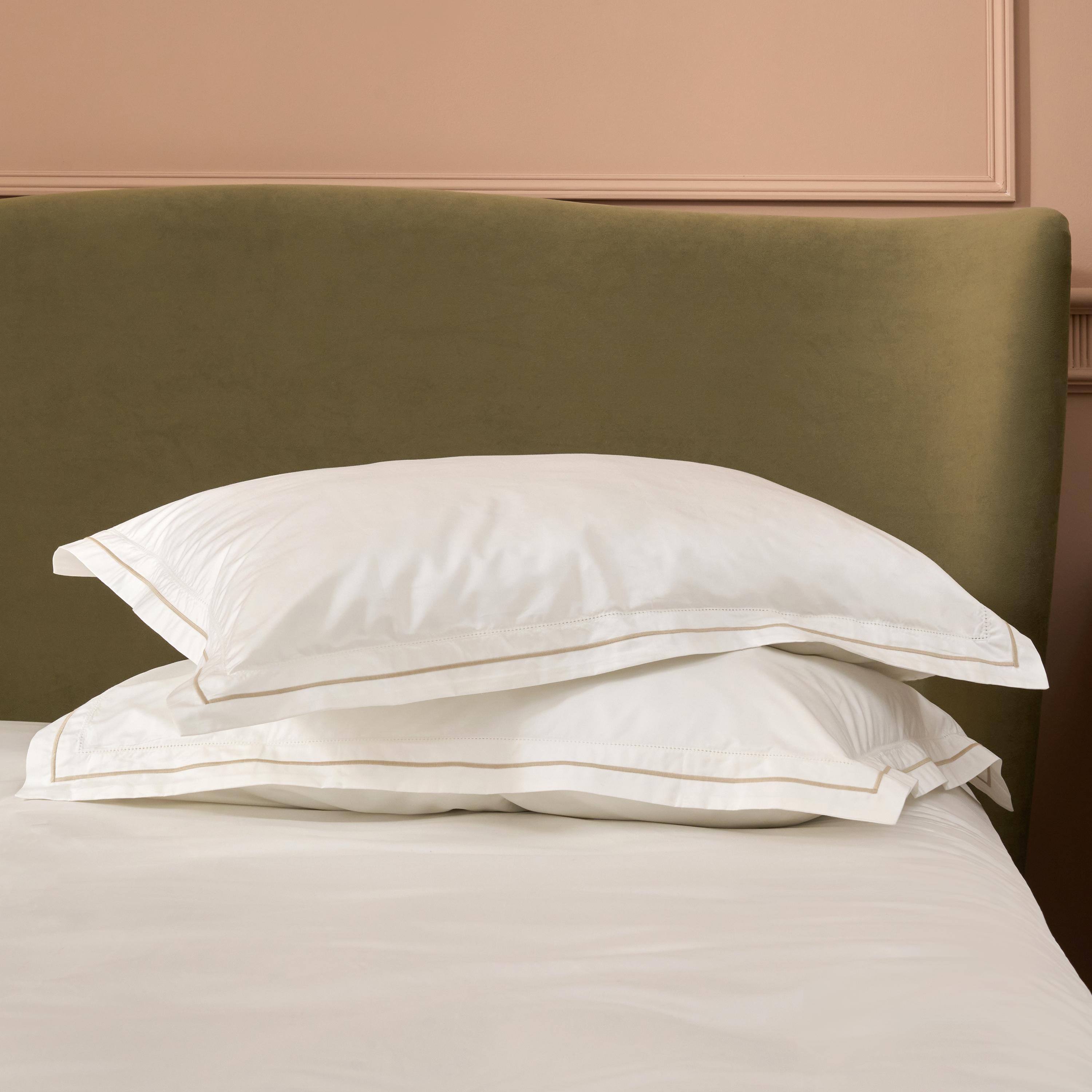 Complete your sleep sanctuary with our impeccably crafted Kensington Oxford Edge Pillowcase Pair. Expertly woven in Portugal from silky-soft 100% cotton sateen with a generous 800 thread count, they offer a beautifully smooth feel and a subtle lustrous sheen. Crisp Oxford borders, intricate ladder stitching and delicate natural-tone embroidery echo the quiet elegance of the coordinating Kensington Duvet Cover.