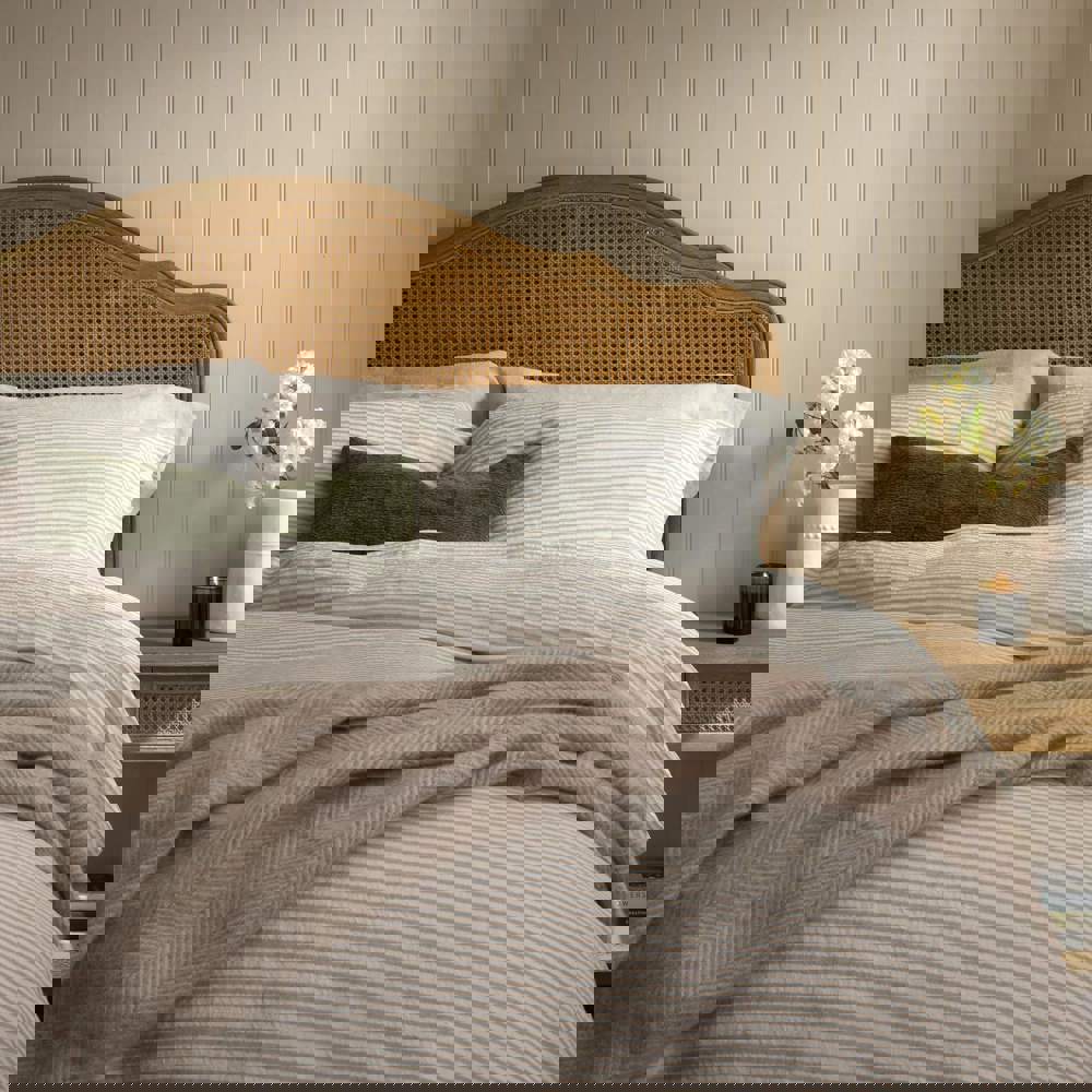 Layered with textured cushions and a cosy throw, the Amelie Stripe Bed Linen set creates a sleep space that’s both curated and irresistibly comfortable – perfect for contemporary interiors with a lived-in look.