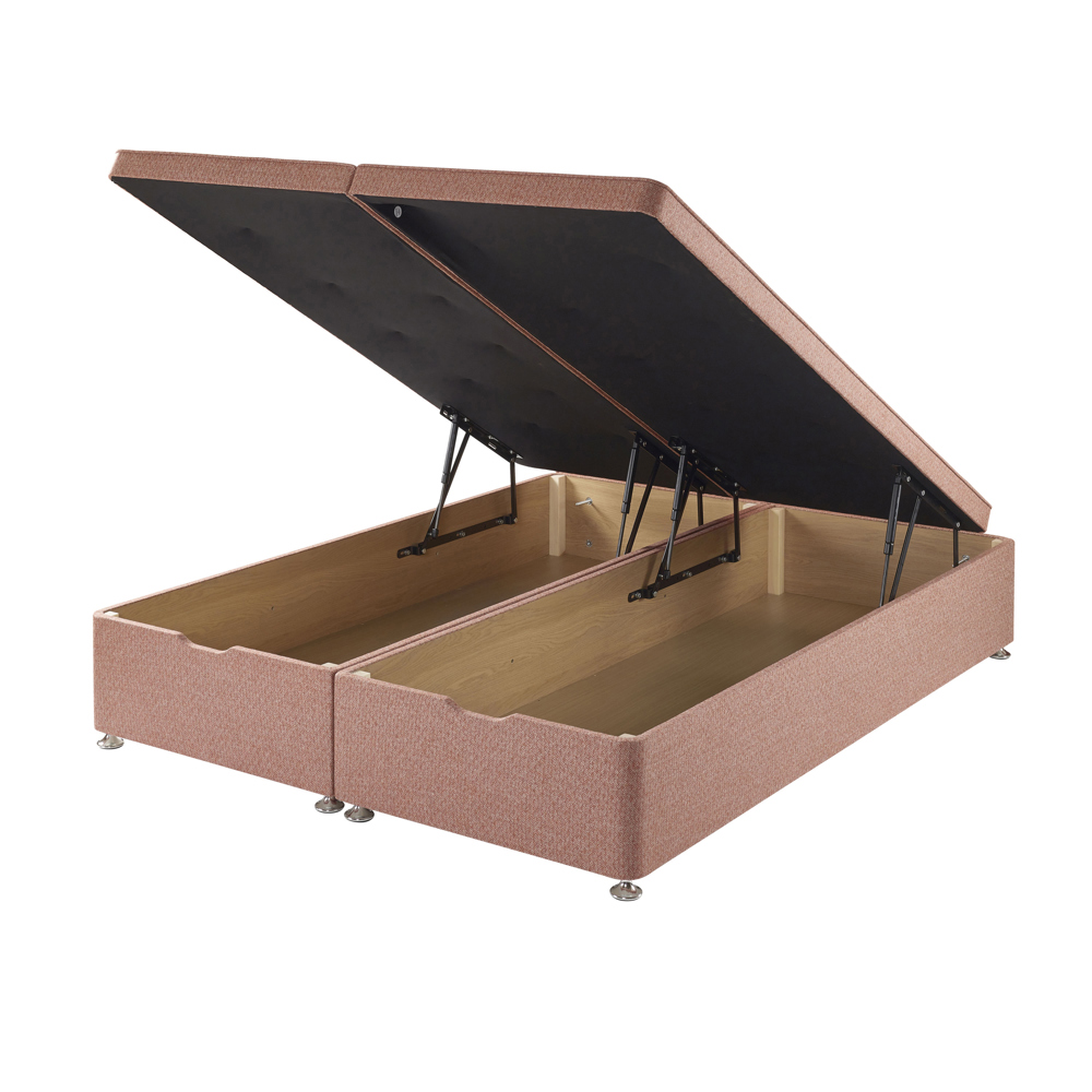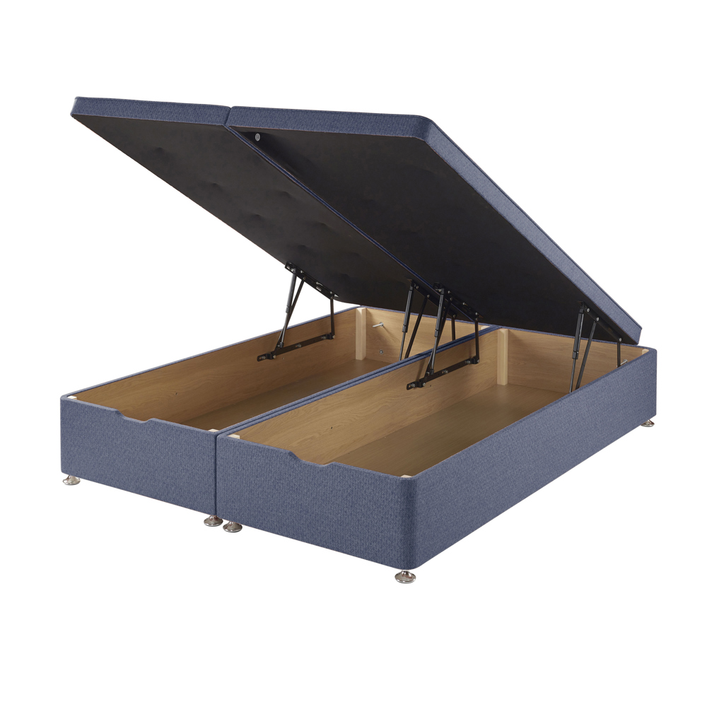 - A traditional divan base, with a front-opening ottoman for all your storage needs