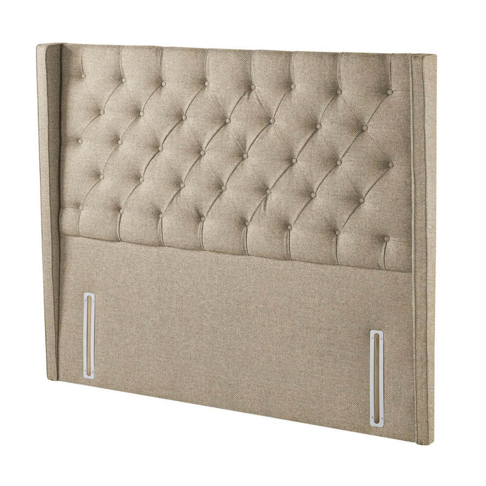 Make a statement in your master suite with the Premium Alcott Headbord. Showcasing deep button details and dramatic winged sides, the Premium Alcott’s tall stature creates a cocooning feel to soothe peaceful slumber. Luxuriously filled with certified recycled materials and expertly upholstered throughout, it’s simple to attach this full-depth headboard to your [divan base].