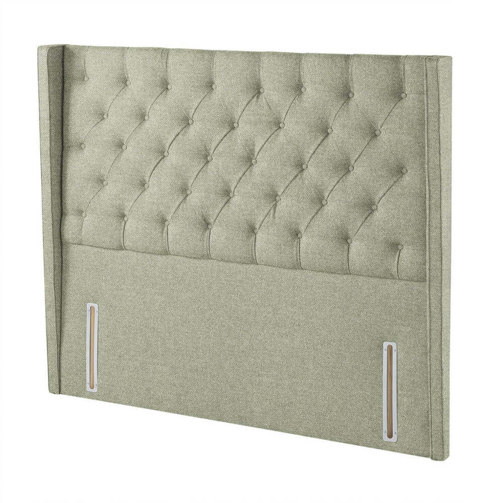Make a statement in your master suite with the Premium Alcott Headbord. Showcasing deep button details and dramatic winged sides, the Premium Alcott’s tall stature creates a cocooning feel to soothe peaceful slumber. Luxuriously filled with certified recycled materials and expertly upholstered throughout, it’s simple to attach this full-depth headboard to your [divan base].