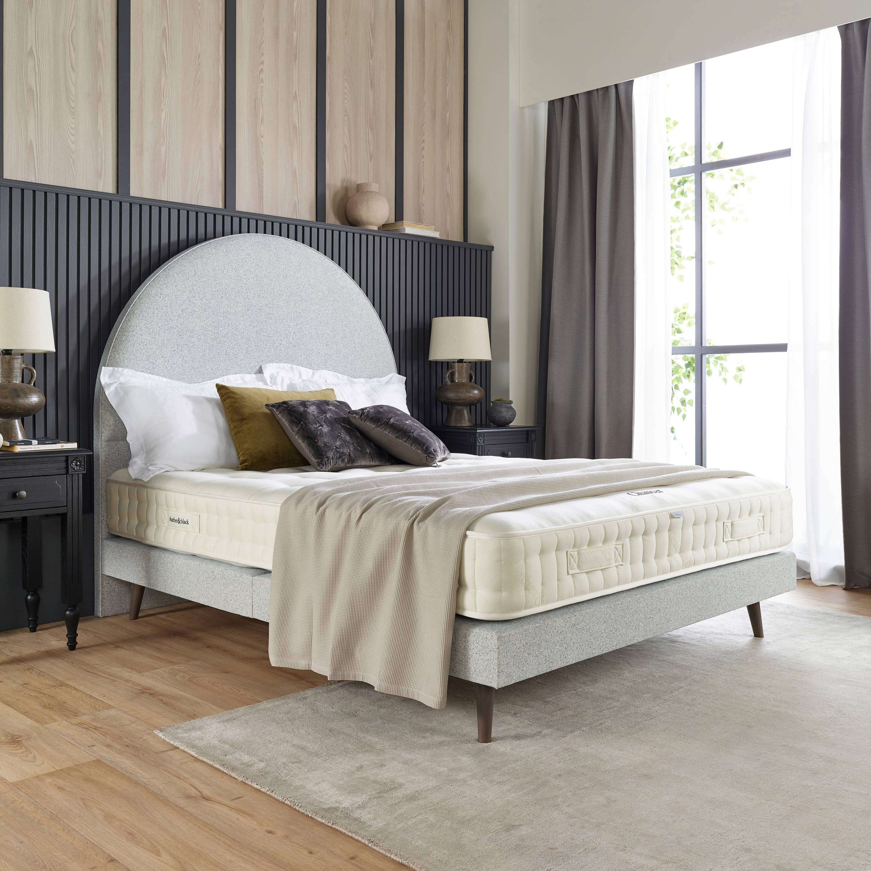 Transform the look of any divan base with the Premium Christie Headboard. Featuring organically inspired curves in a half moon design, this statement design retains a soft, natural feel that pairs well with a variety of bedroom furniture. The Premium Christie Headboard is full depth for easy attachment to your divan bedframe, and luxuriously padded so you can lounge comfortably night after night.