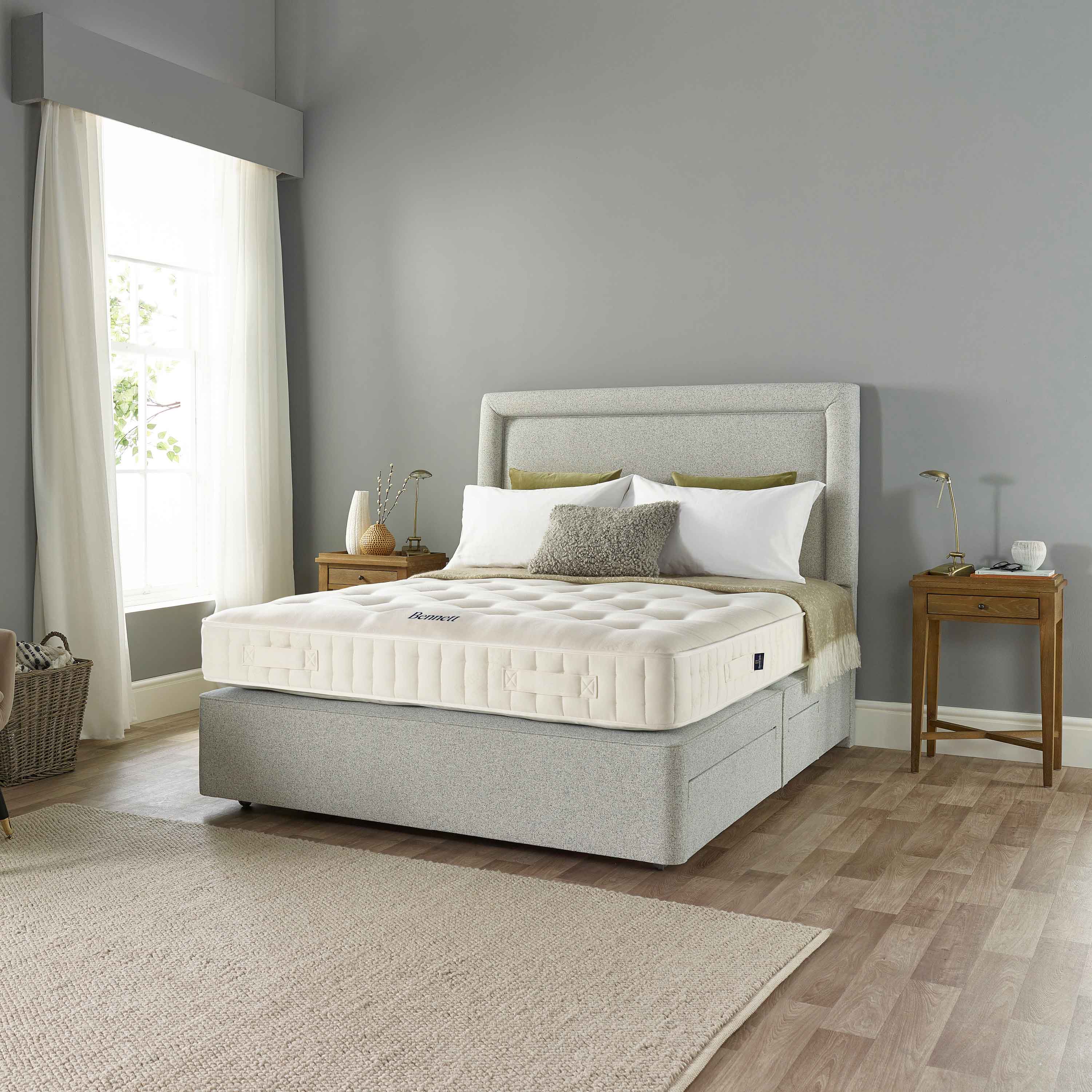 - Shelley’s full depth design sits flush to the floor for easy attachment to your divan base