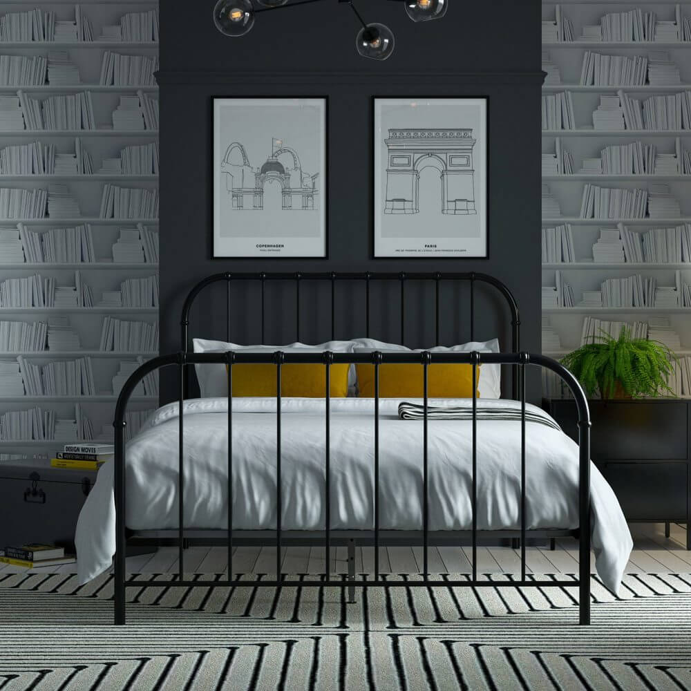 - Traditional dorm style metal bed