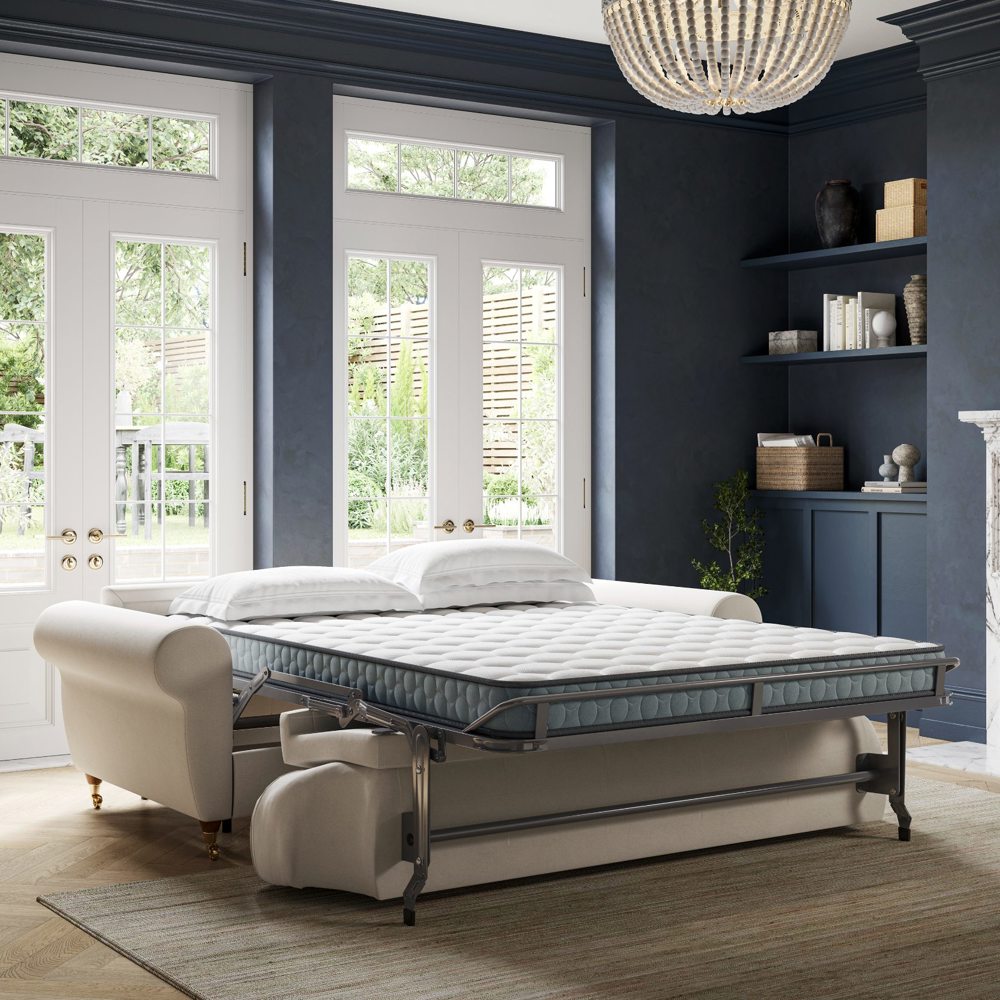 The best moments in life are spent together. Make more time for enjoyment with the Felicia Sofa Bed, designed to lend a helping hand when loved ones come to stay. This elegant sofa instantly transforms into a sumptuous sleep space for two. Its effortless roll-out mechanism reveals a 13 cm-deep mattress, expertly layered with luxurious foam to cradle your guests in unrivalled comfort. Experience the superior support of a traditional bed, seamlessly integrated into the stunning design of a sofa.