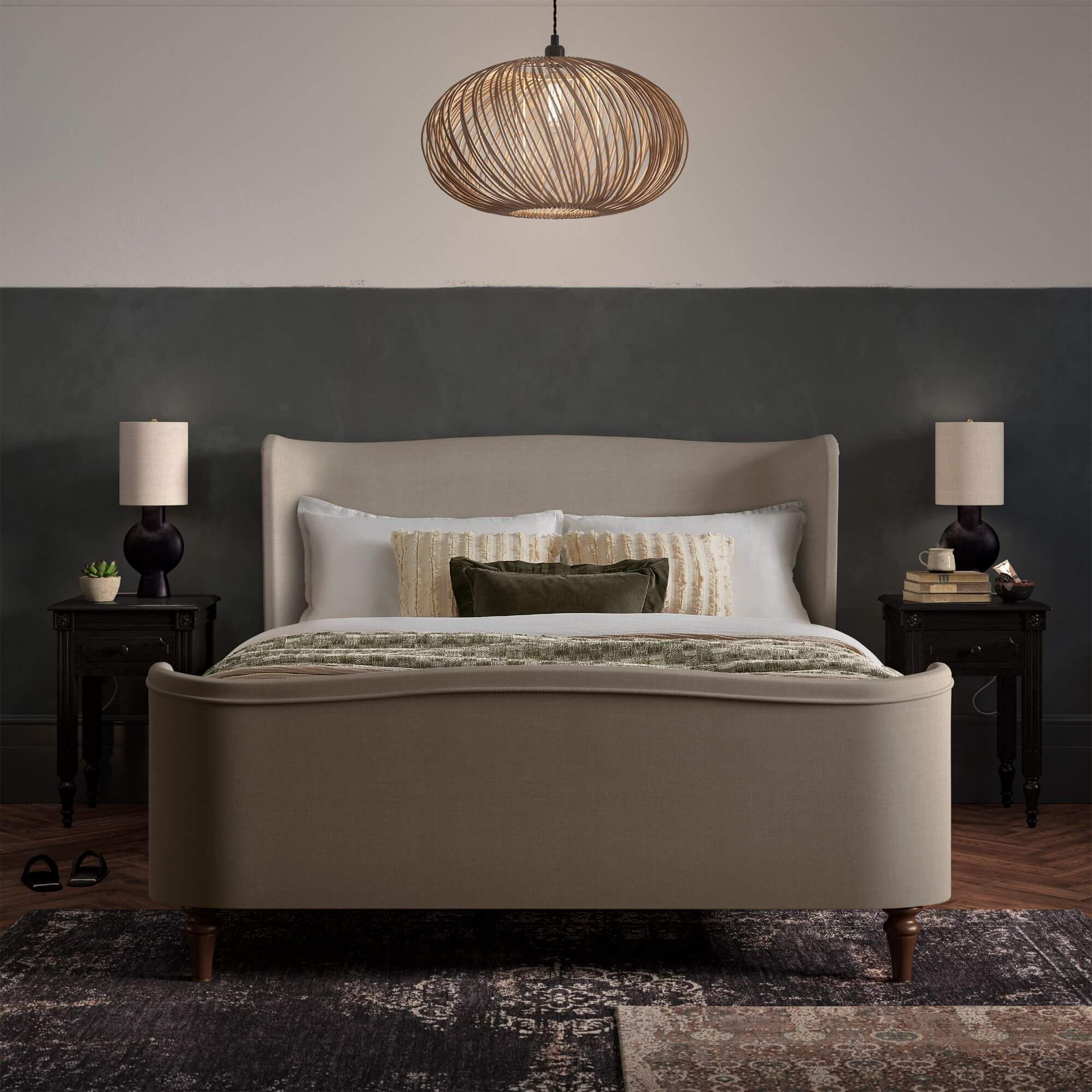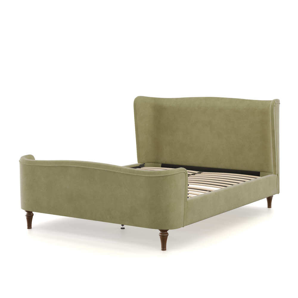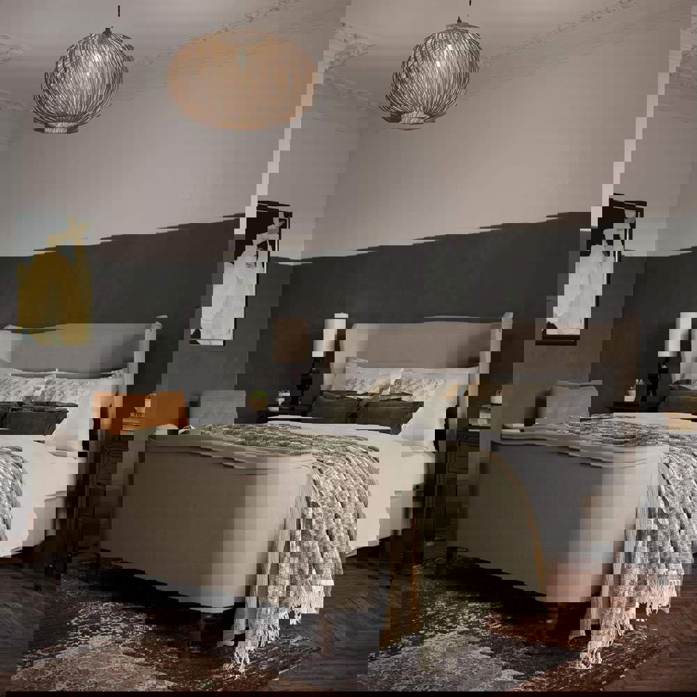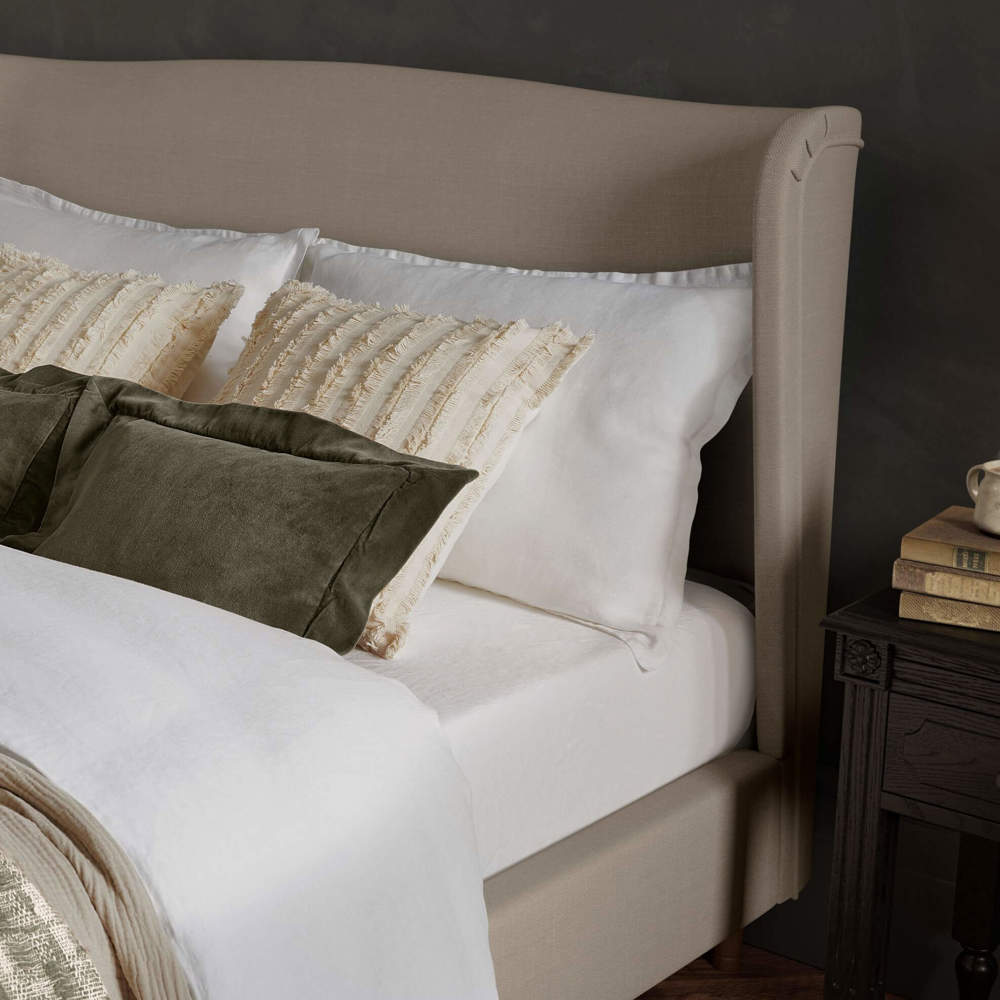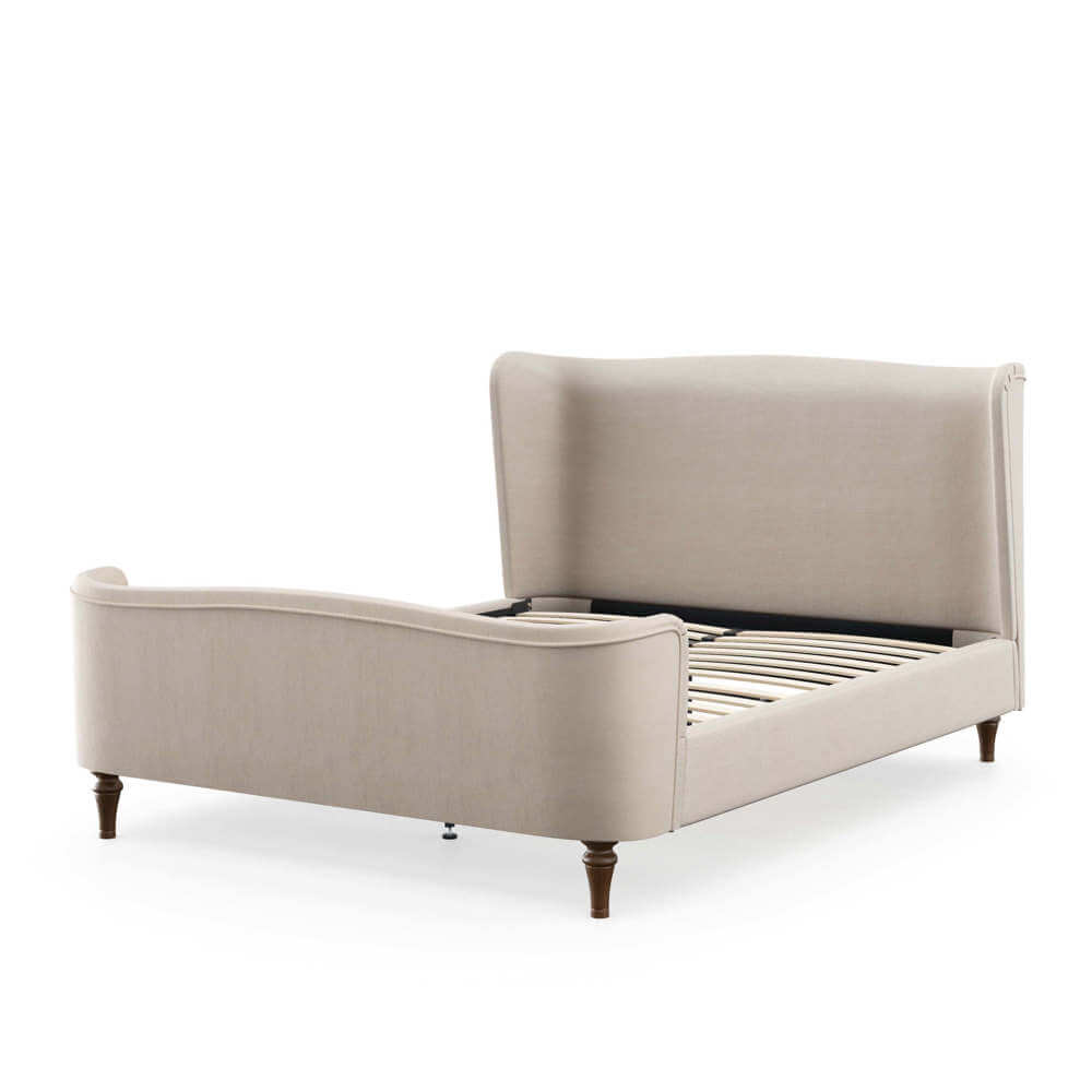 Charlotte’s sleek curved profile and sumptuous upholstery make her the perfect fit for your bedroom. A tall, cocooned headboard showcases our signature winged finish, the ideal pick for cosy comfort. This sophisticated style features a raised foot end with accentuated curves, in your choice of rich velvet or soft woven fabric. Choose Charlotte for a bedroom wow that won’t cost you an ounce of cosiness.