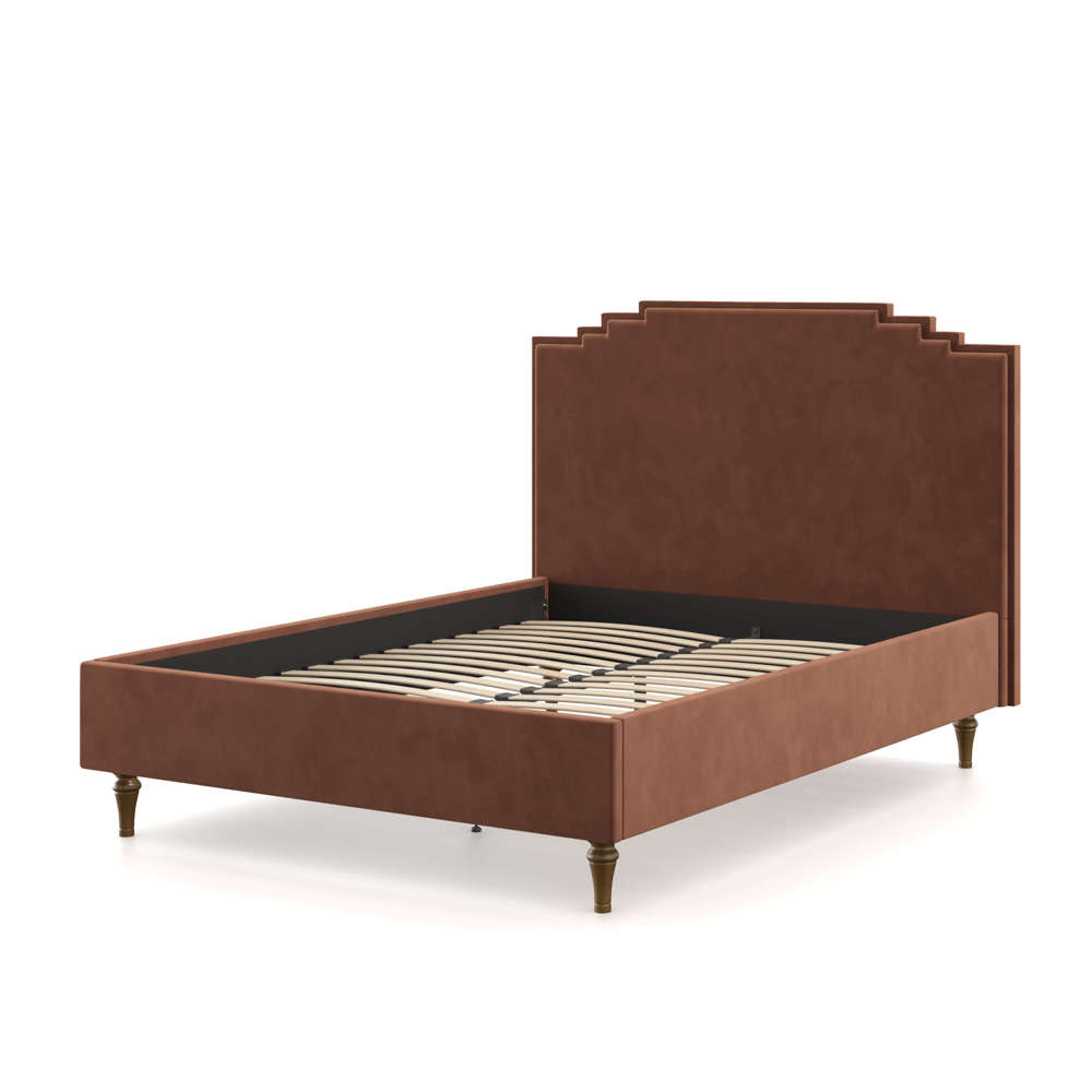 - High, distinctive headboard with Art Deco inspired detail