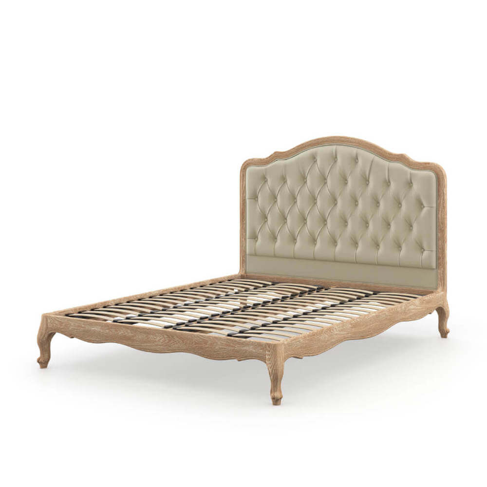 The Sienna showcases a high headboard, upholstered in 100% natural linen and encased in solid weathered oak. Exquisite craftsmanship and French-inspired curves complete the endlessly elegant design, with classic cabriole leg styling.