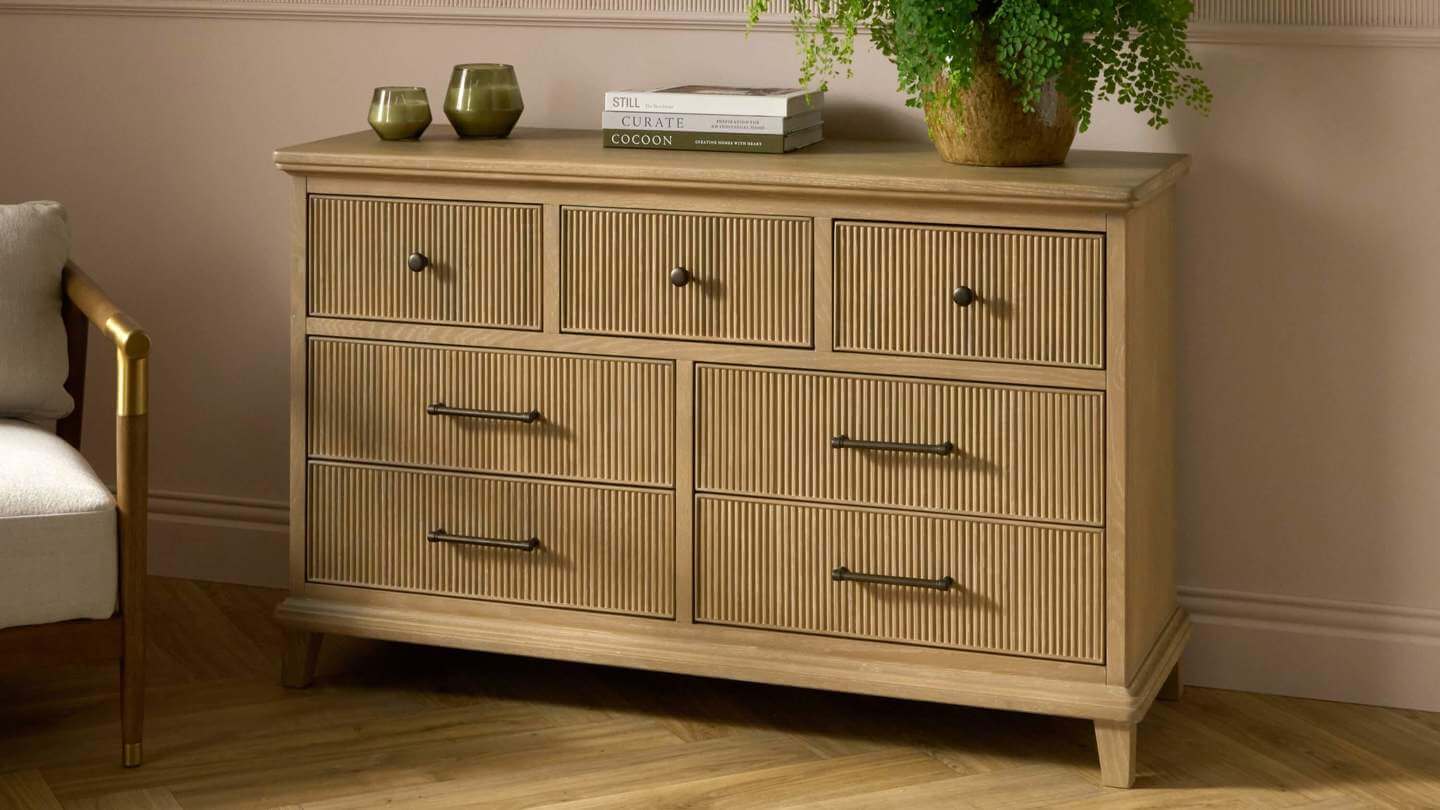 - New Lydia 7 Drawer Wide Chest Washed Oak £1,199
