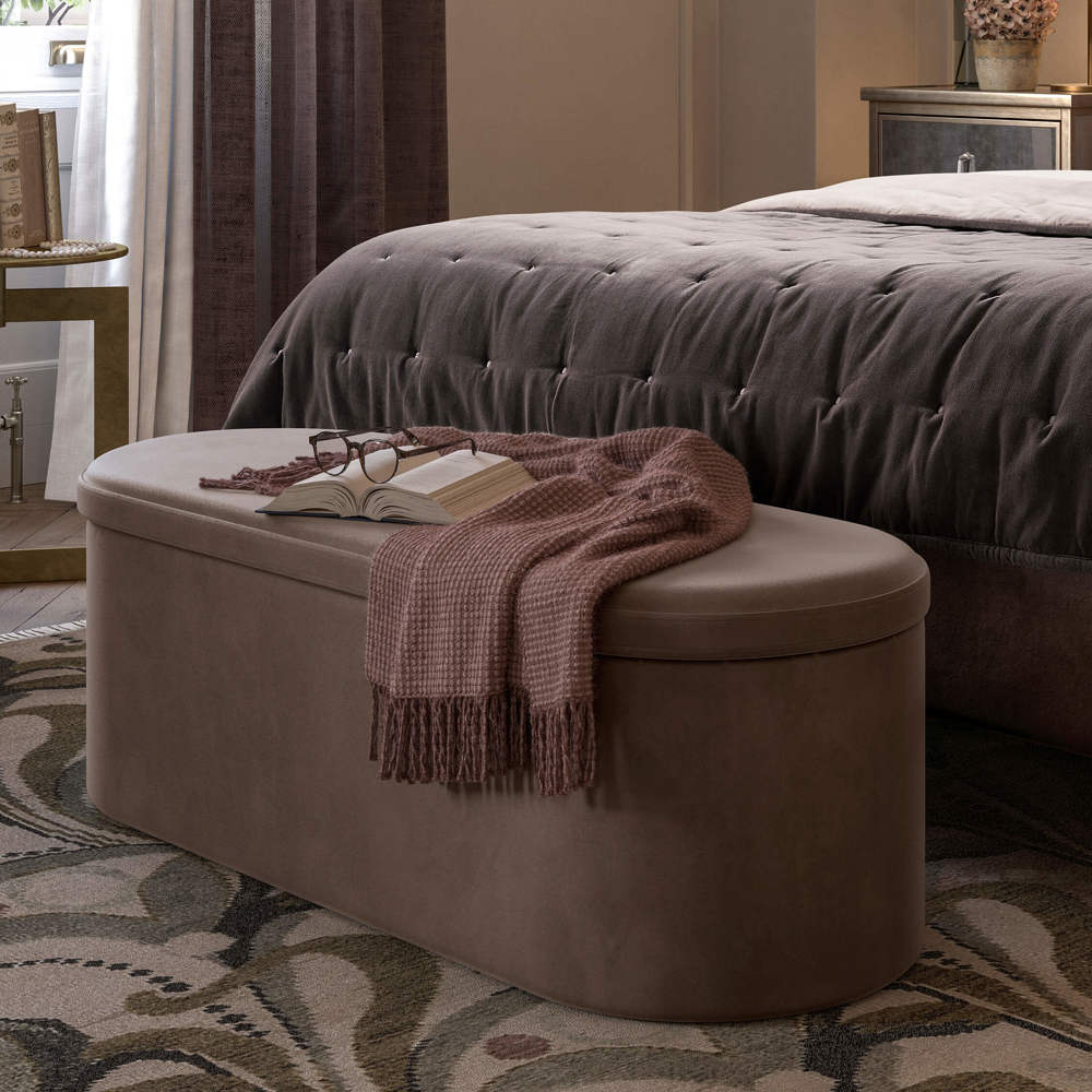 Sitting wonderfully at the foot of your bed or as a standalone piece in a stylish dressing room or living space, the Pill Blanket Box is a must-have for storage and style. Indulge in its versatile cool-tone colour, in a soft rectangular shape to suit a variety of rooms. As well as a delicious chocolate velvet-touch finish, the Pill Blanket Box offers maximum storage with a fully removable lid.