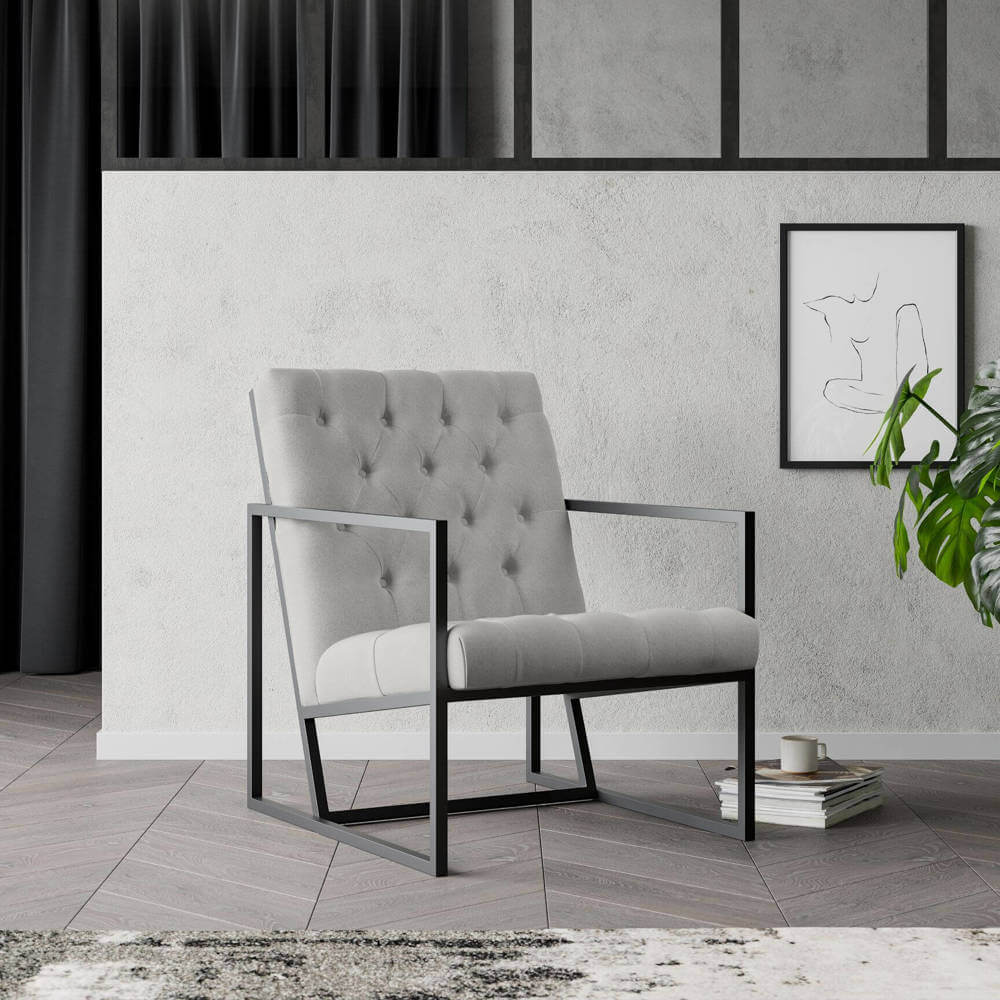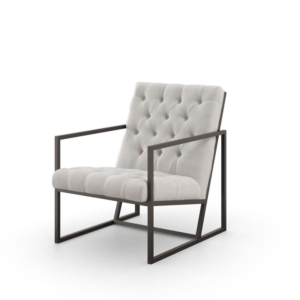 Complete a chic space with the sophisticated Else Chair. Showcasing deep button quilting in the soft-touch fabric finish, Else’s romantic details are coupled with industrial-inspired metal legs.