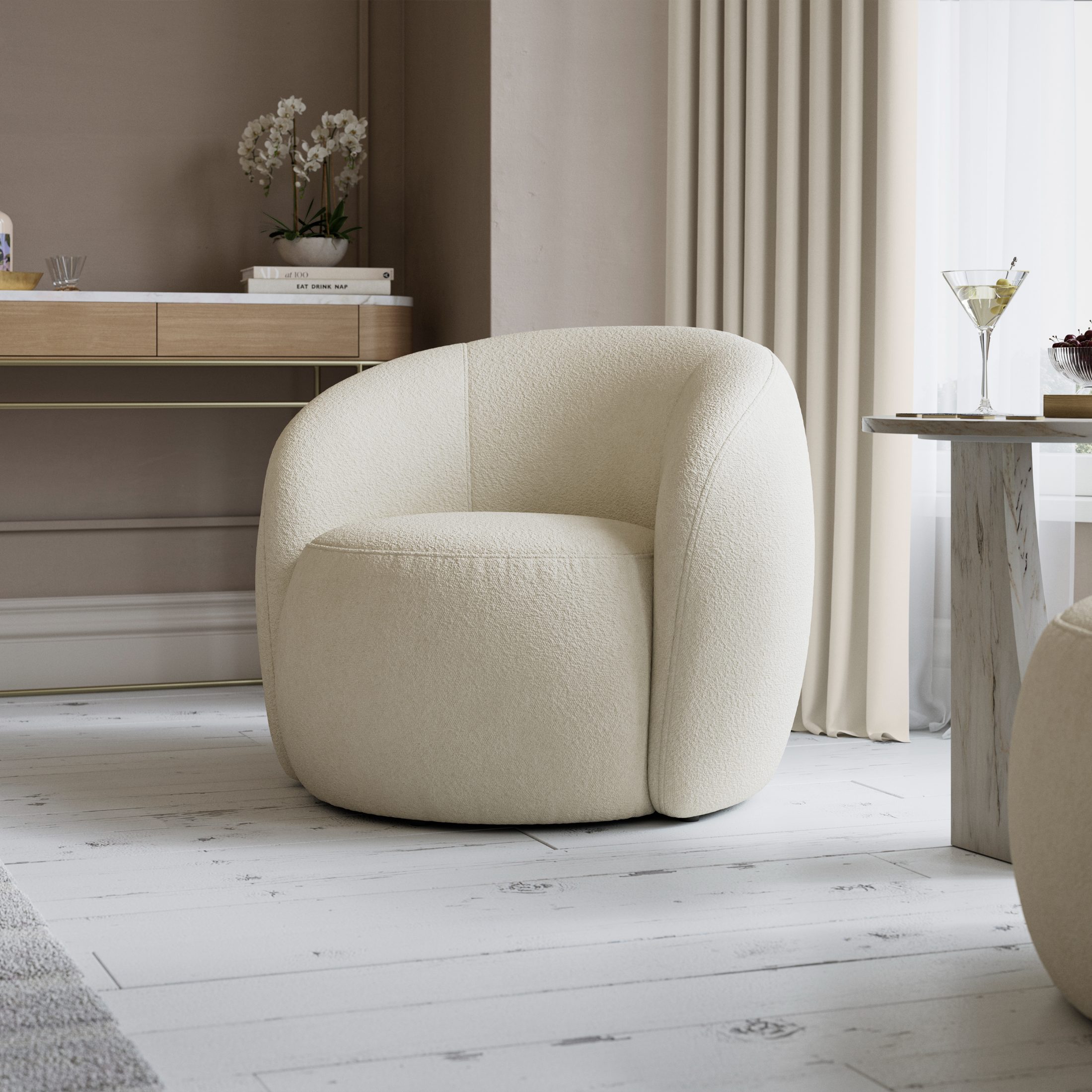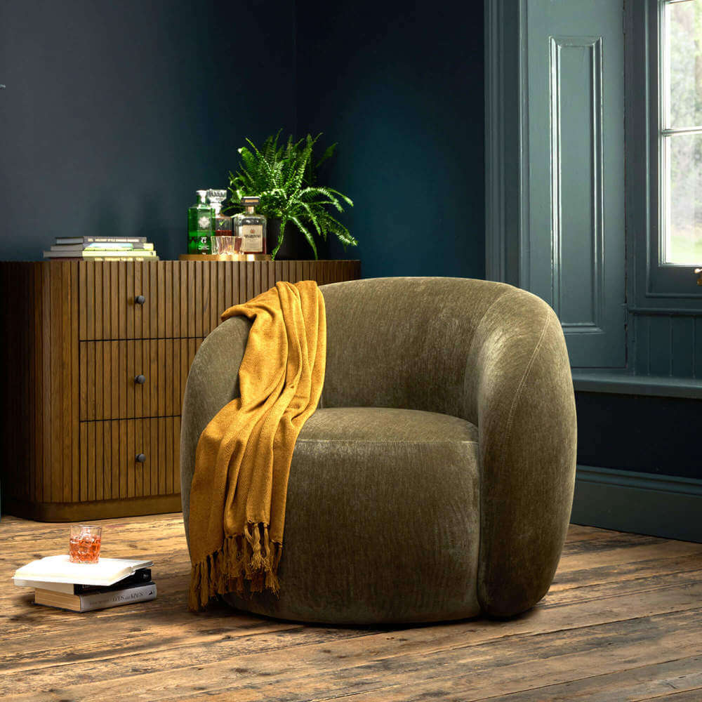 An ode to the sweeping curves and soothing earth tones of classic seventies design, the Geneva Chair is swinging into style. With a traditional tub shape and barrel back design, Geneva is sumptuously padded, creating an inviting space to curl up and get cosy.
