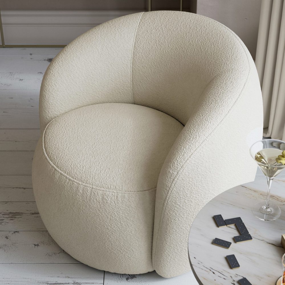 - Available in a range of finishes: rust or olive chenille-touch or natural off-white boucle