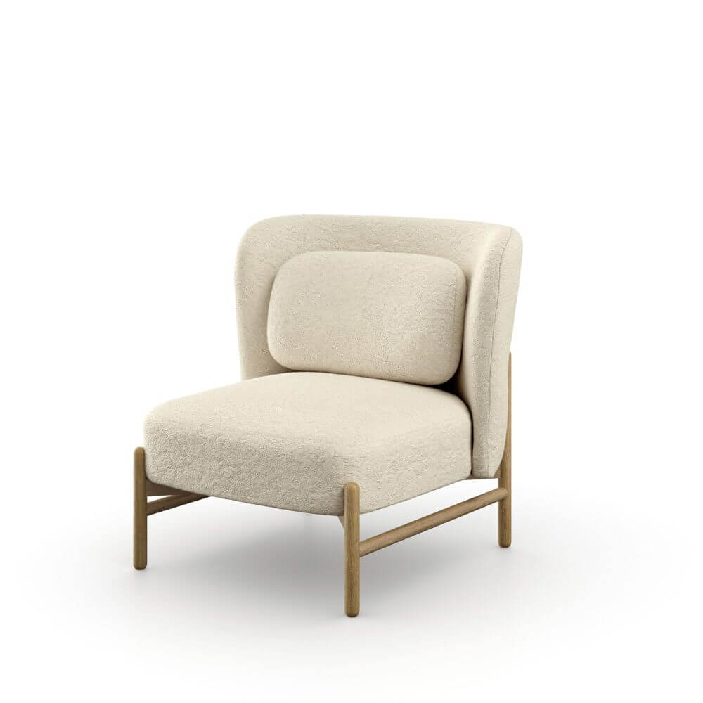 - Features a cosy bouclé seat in a soft natural tone