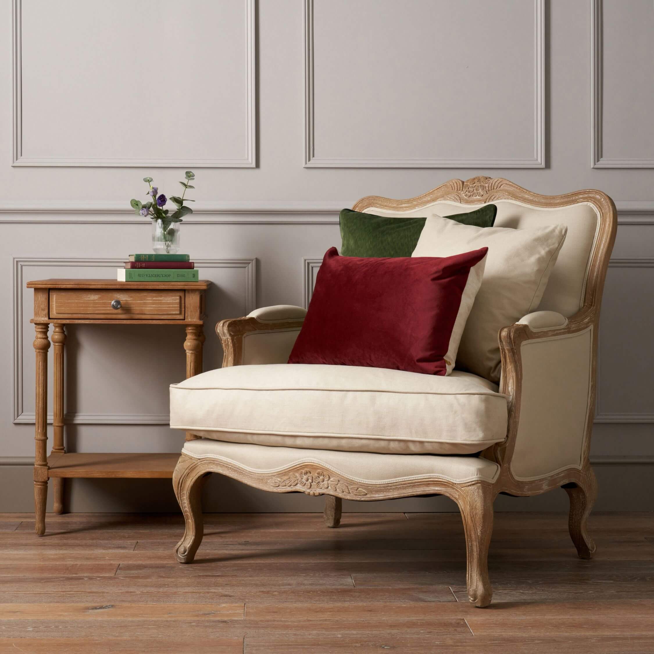 Our stunning French-inspired Sienna Armchair is endlessly elegant. Crafted from weathered oak with a plump seat cushion and coordinating cushioned arm rests, the sweeping curves and cabriole shaped legs are beautifully feminine. This chair will look fabulous in the bedroom, front room or cosy reading nook.