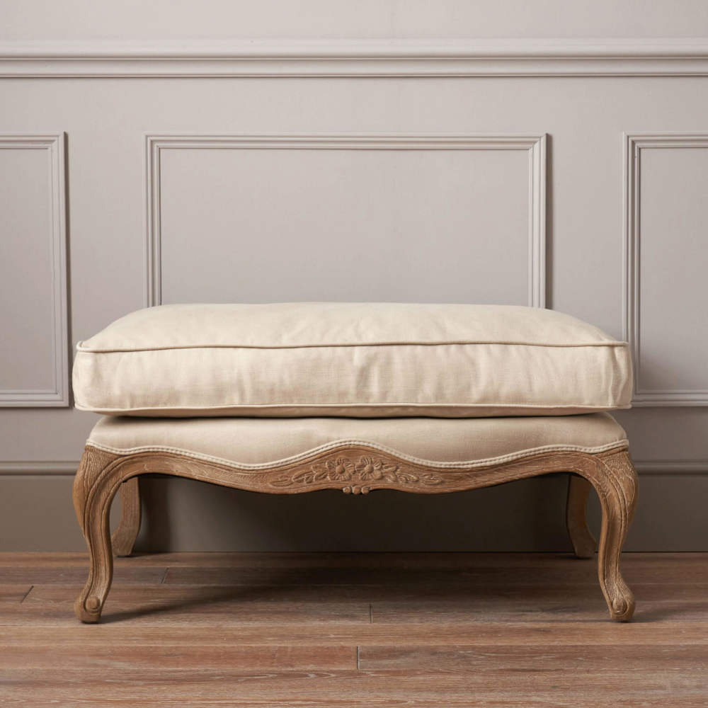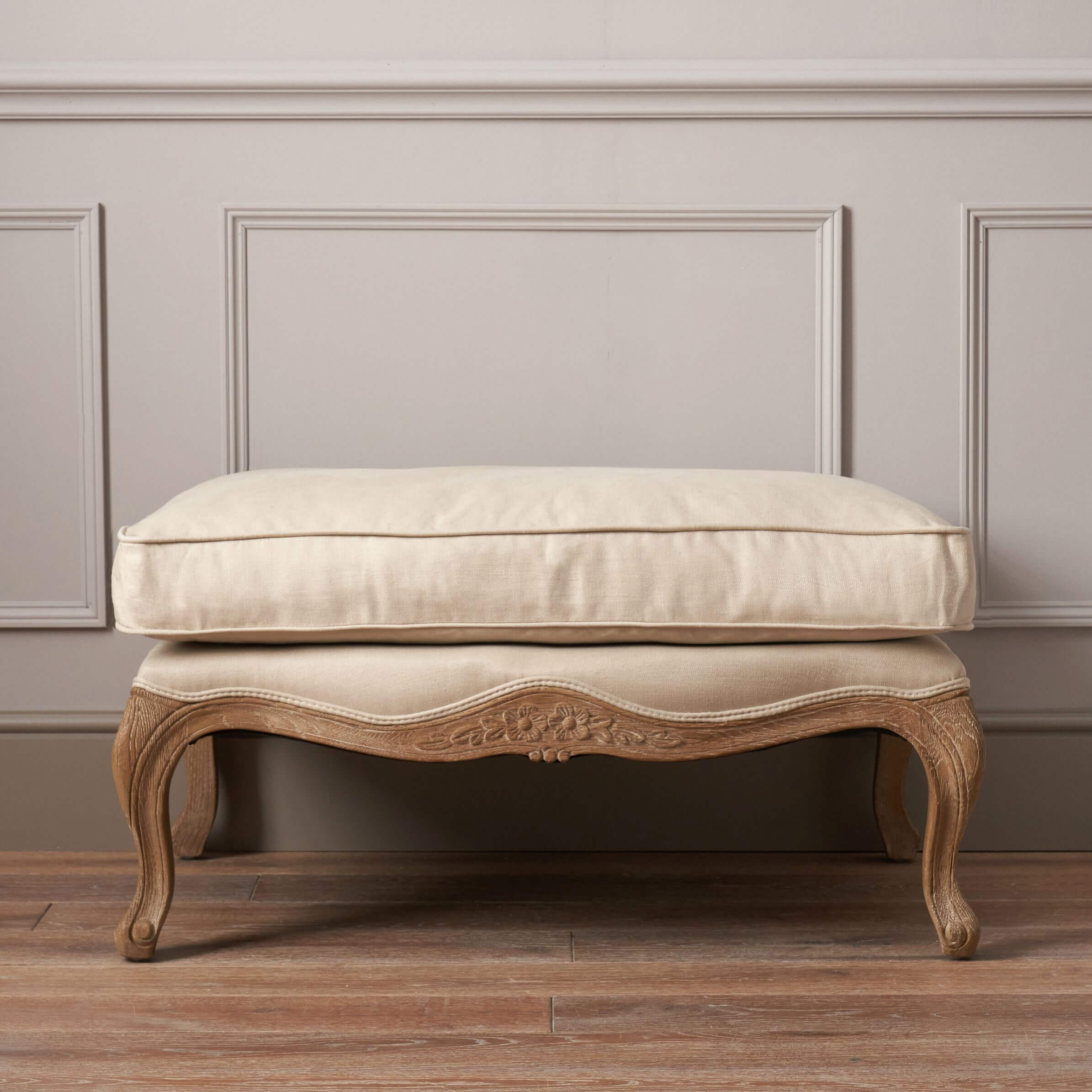 Wonderfully plush and comforting, the Sienna Footstool is much more than a place to put your feet up. Exquisitely detailed in classic Sienna style, with cabriole legs and intricately carved rosettes, this footstool’s 100% linen upholstery is versatile and inviting. This footstool is the perfect accompaniment to the signature Sienna Armchair.