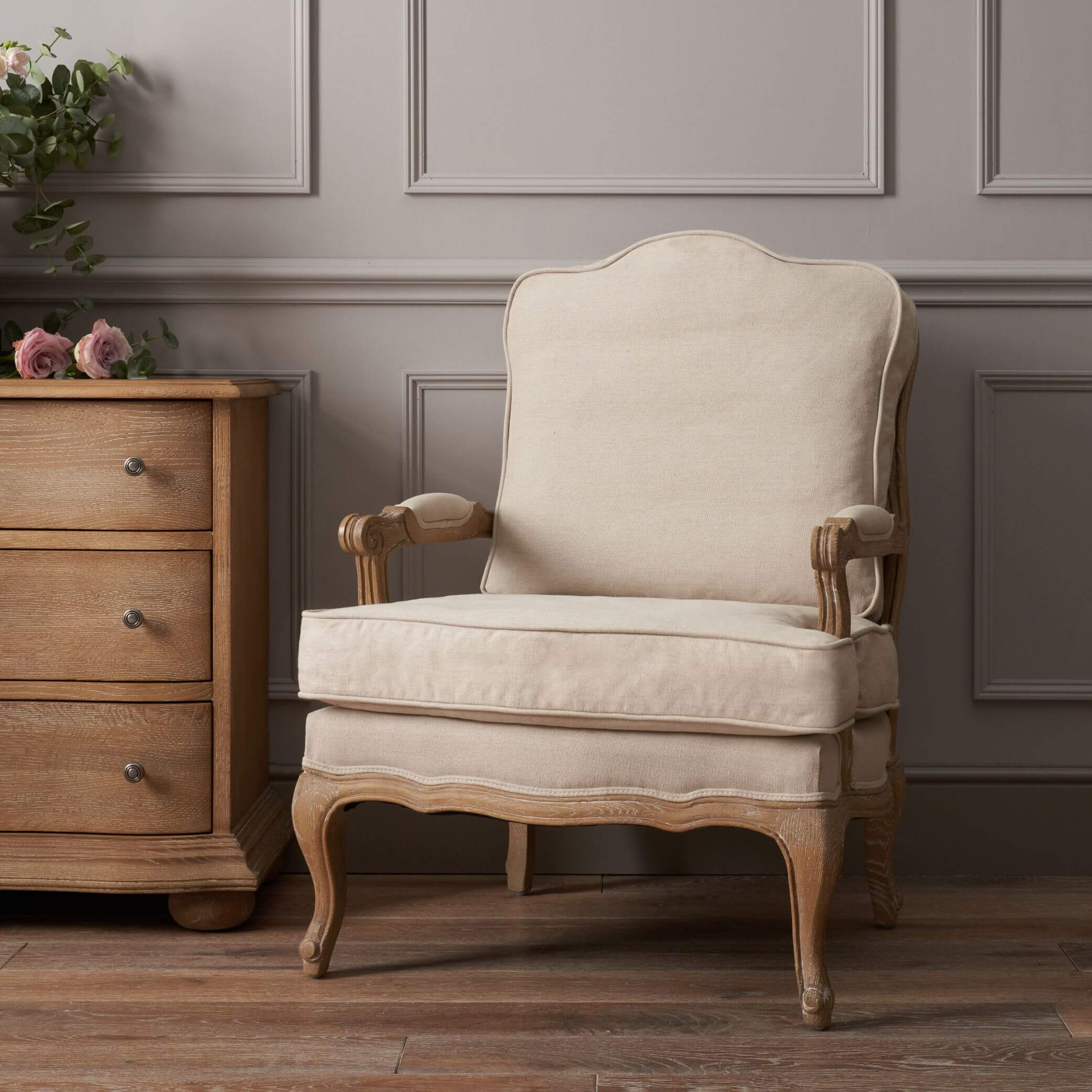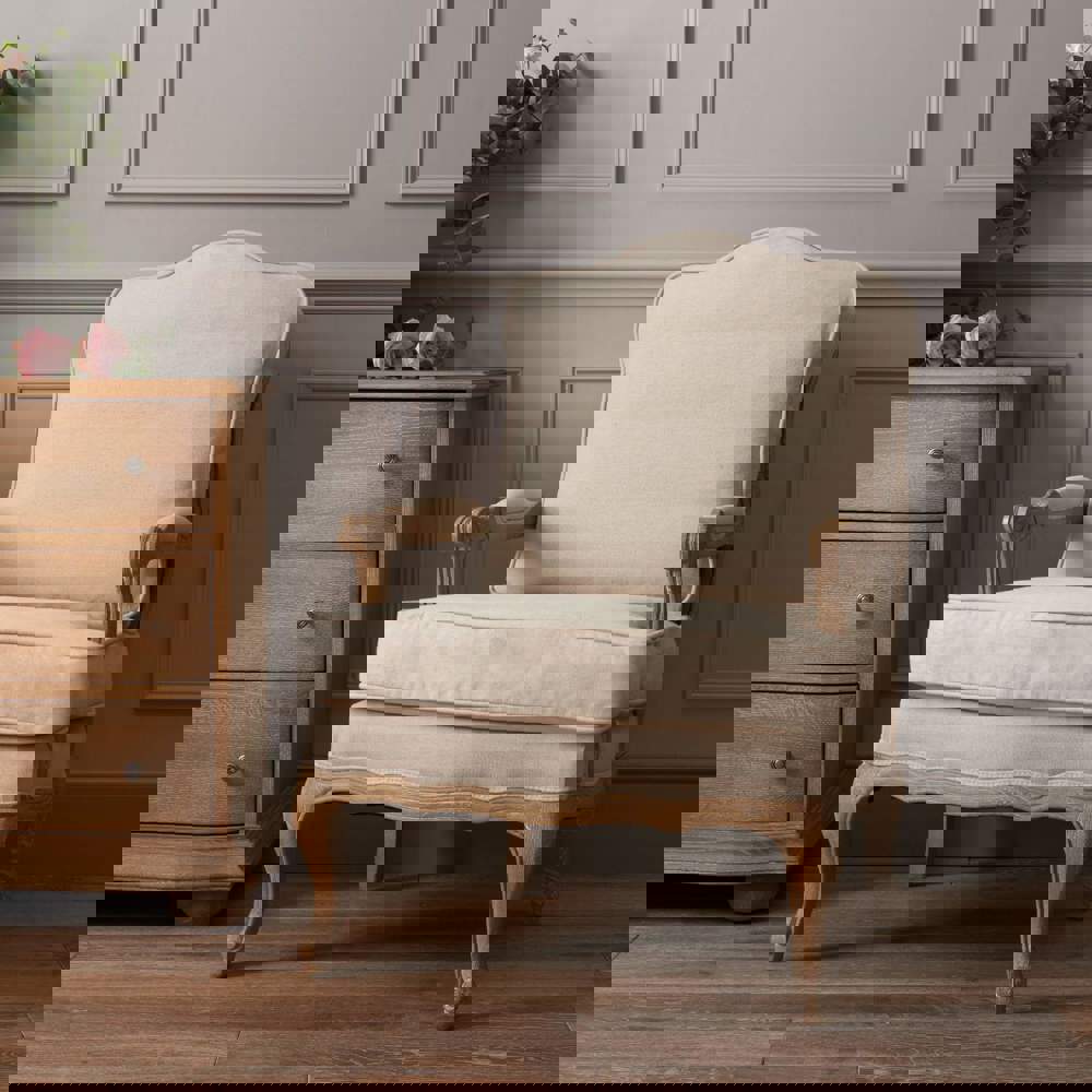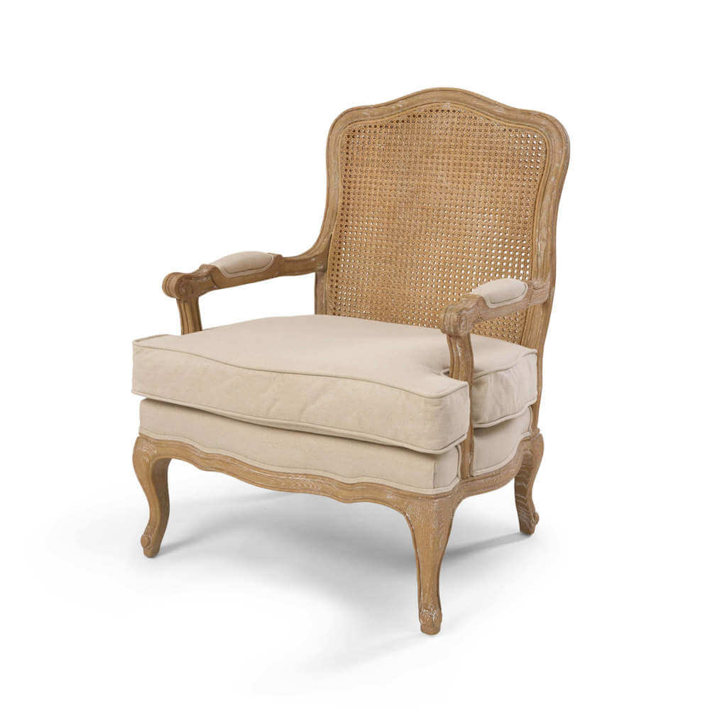 The French-inspired Sienna Rattan Back Armchair is exceptionally stylish. Pairing soft natural linen with a durable double layer of rattan, this armchair invites you to curl up in luxurious comfort. Perfect for the cosiest of reading nooks or timeless master suites, the delicate details of this statement armchair showcase exceptional quality.