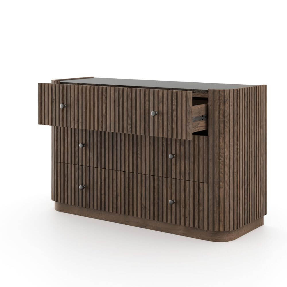 A showstopping bedroom centrepiece, the Jacob Chest is exclusively crafted using solid wood and natural marble, in your choice of a neutral light or dramatic dark stain finish.