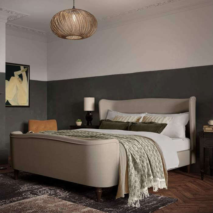 For more intimate spaces, enjoy the warm embrace of our Cambourne bed, wrapped in irresistibly indulgent boucle in the softest shade of latte. Larger bedrooms can effortlessly accommodate the sleek and sophisticated Charlotte bed, lavishly swathed in rich velvet with a deep chocolate or muted olive hue. Adorn your bed with luxurious linen from Feather & Black, meticulously crafted from the softest 100% cotton in a range of neutral hues to complement cosy colour schemes.