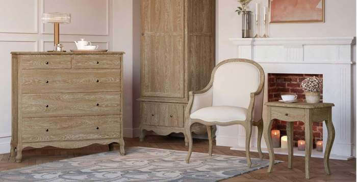 The deeply elegant, solid oak Sienna range is epitomised by its romantic sweeping curves and timeless French styling, elevating a warm and comforting space with a touch of sophisticated luxury. The stunning Salcombe collection, with its plushly-padded upholstered bed and pale weathered oak finishes, brings a sense of rustic charm that invites comfort into every corner.