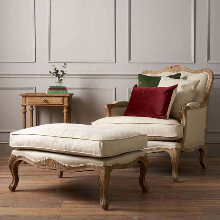 There is something so wonderfully indulgent about a deep button detailing on an upholstered headboard, and when framed by ornately carved antique weathered oak with delicate fluting detail, it’s a match made in heaven. The graceful presence of our elegant Loire Bed, paired with the charming and characterful Loire bedside tables and half-moon console table, brings a touch of decadent splendour to any bedroom space.