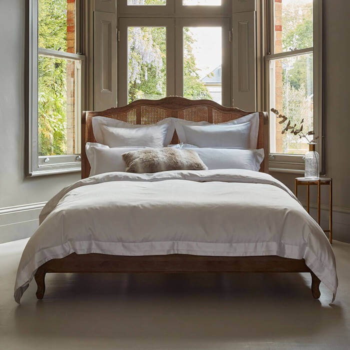 For a more dramatic and unapologetically decadent décor, our magnificent Versailles Bed is overflowing with elegance and romance. The grandeur of its imposing winged rattan headboard demands attention, the solid weathered oak frame intricately carved with exquisite floral detailing. Pair with the with classic beauty of the Sienna Rattan furniture collection, creating a sanctuary of unparalleled grace and charm.