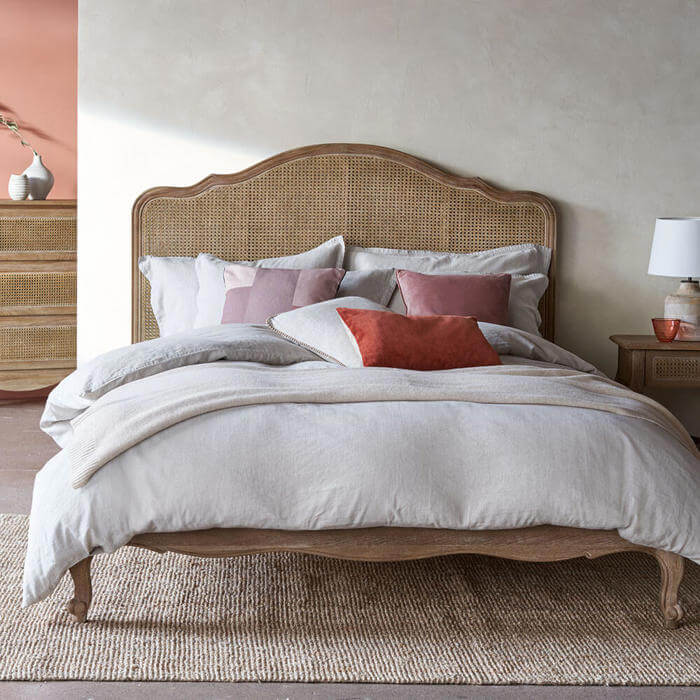 Texture brings soul to a space, and when wood meets woven detail, the result is quietly captivating. The Sienna Rattan bed blends warm oak with curved rattan panels, creating a soft interplay of materials that feels relaxed and refined.