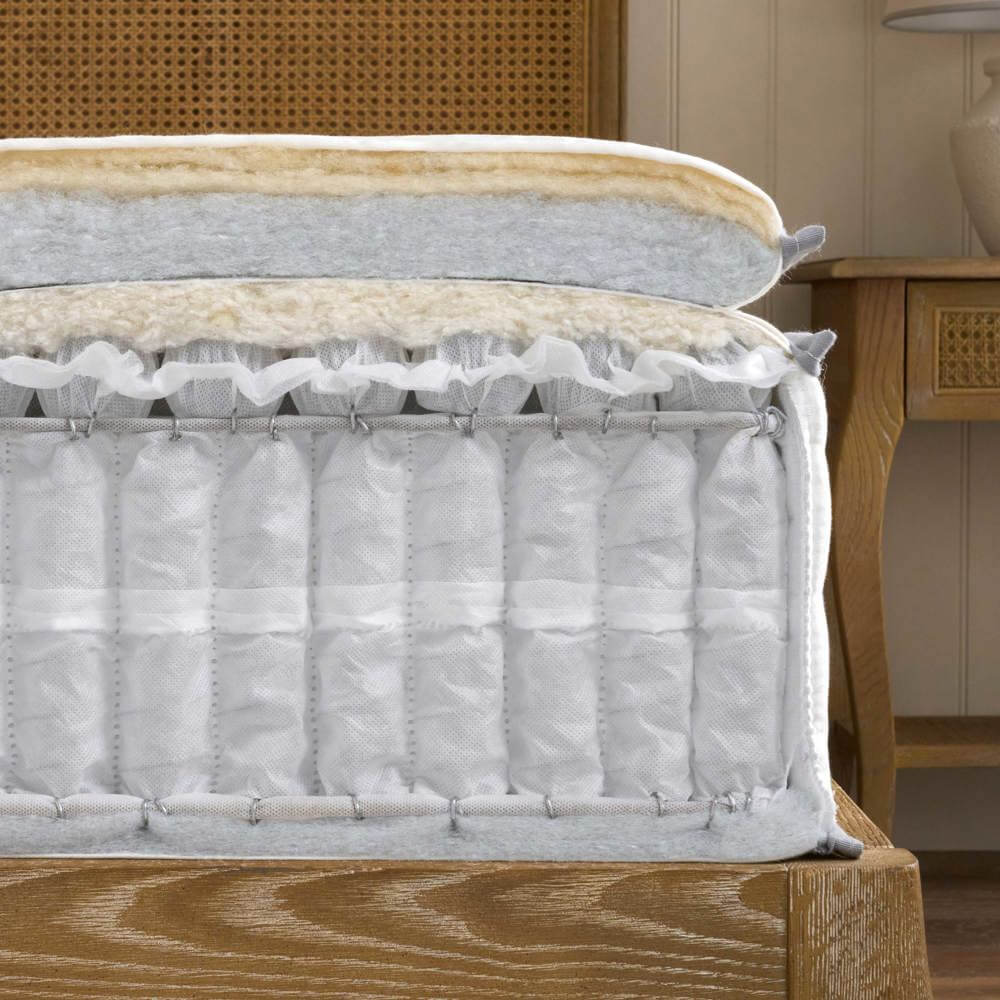 The Thames mattress is an outstanding all-season bedfellow for comfort in any climate, with the added indulgence of a comforting pillow top. Richly filled with an expert blend of temperature-regulating British wool and 2,400 (king) highly adaptive pocket springs, this mattress is as cosy as it is supportive.