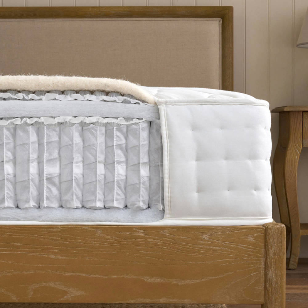 The Walters mattress offers a serene and supportive sanctuary through every season. Expertly crafted in the UK, it’s designed to gracefully adapt to the weather, keeping you cool in heatwaves and warm in cold snaps. At its heart, British wool works in harmony with luxurious mohair, gently regulating your temperature and wicking away moisture. Mohair is renowned for its resiliency and sustainability, being naturally biodegradable.
